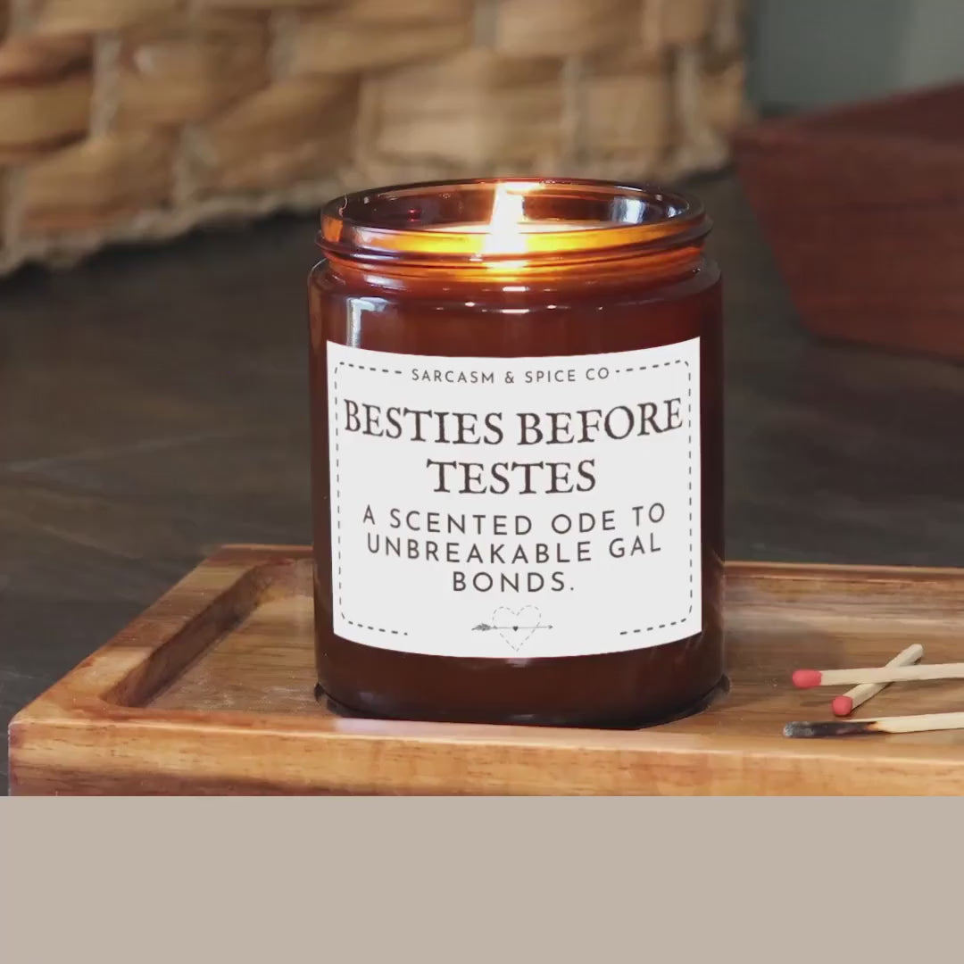 This best friend candle is the perfect gift to celebrate your closest bond with humor and heart. Designed as a funny gift candle, it delivers a cozy, natural fragrance that creates inviting vibes in any room. Crafted from soy wax, this vegan scented candle offers a long burn candle experience, making it an ideal bff valentines gift or bridesmaid candle gift that lasts through countless memorable moments. The witty “Besties Before Testes” message adds personality, making it a standout galentine day candle and friendship gift idea that your bestie will treasure.