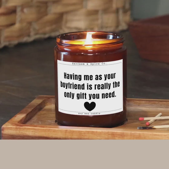 This Valentine’s Day, surprise your girlfriend with a heartfelt gift she’ll adore—a Vday candle featuring the charming message, “Having me as your boyfriend is the only gift you need.” Perfect as an anniversary gift or a Valentine’s candle for her, it’s a thoughtful way to make her smile and feel loved.