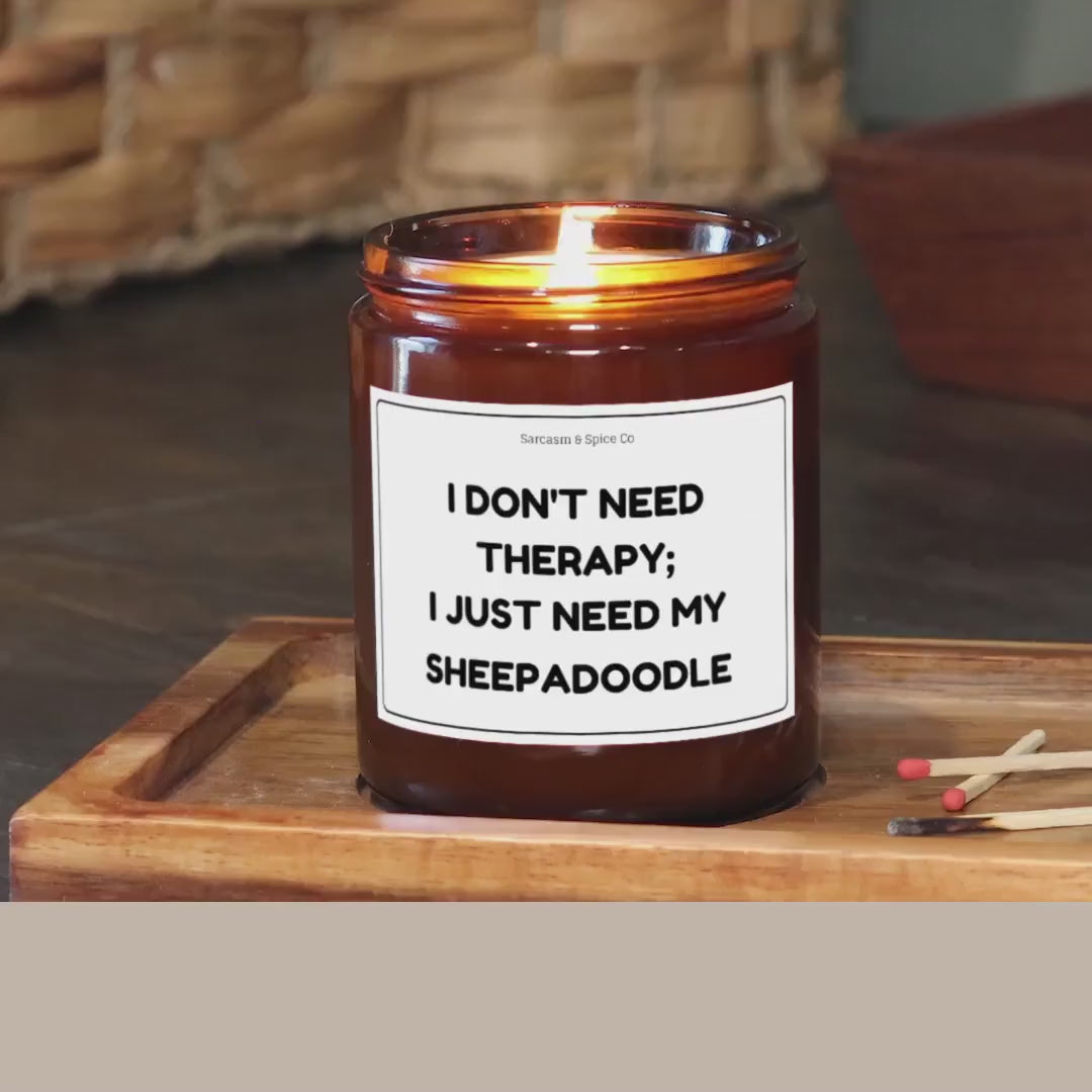 Sheepadoodle Candle Gift For Dog Lover Funny Candle For Dog Mom Gift For Women Who Love Dogs Don’t Need Therapy I Just Need My Sheepadoodle