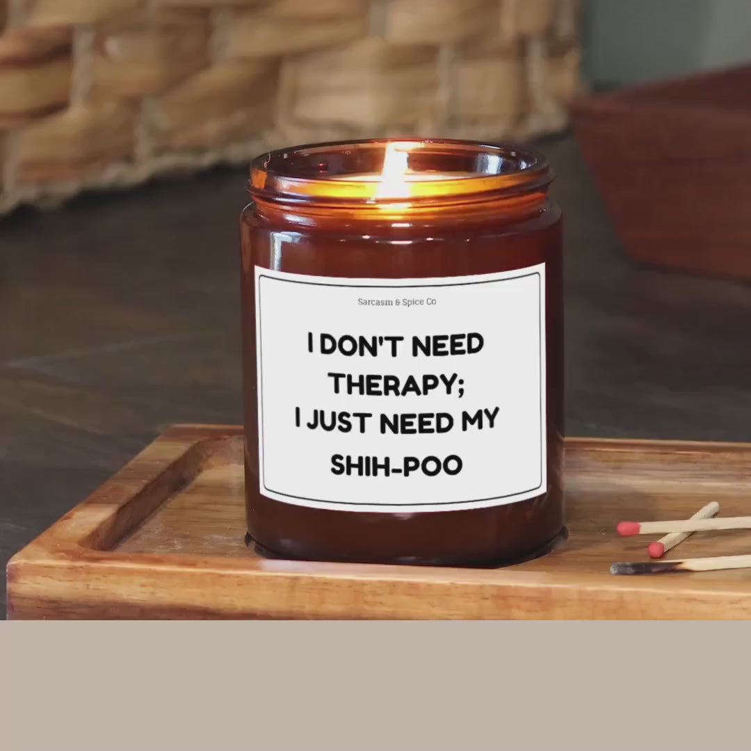 Shih-Poo Candle Gift For Dog Lover Funny Candle For Dog Mom Gift For Women Who Love Dogs I Don’t Need Therapy I Just Need My Shih-Poo
