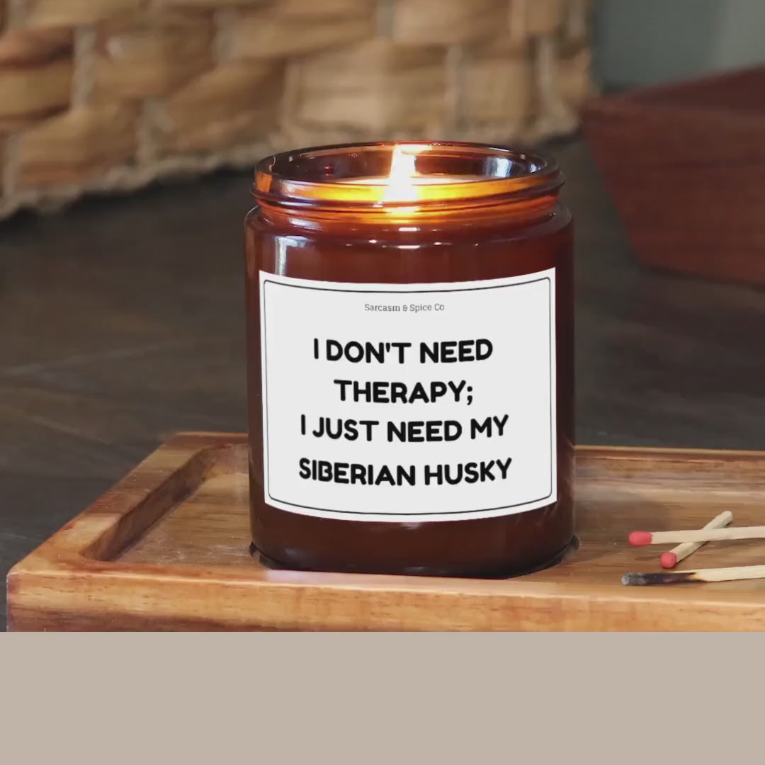 Siberian Husky Candle Gift For Dog Lover Funny Candle For Dog Mom Gift Women Who Love Dogs Don’t Need Therapy I Just Need My Siberian Husky