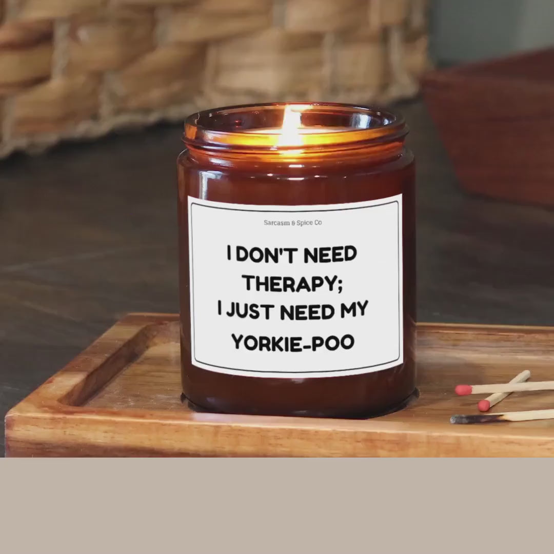 Yorkie-Poo Candle Gift For Dog Lover Funny Candle For Dog Mom Gift For Women Who Love Dogs I Don’t Need Therapy I Just Need My Yorkie-Poo